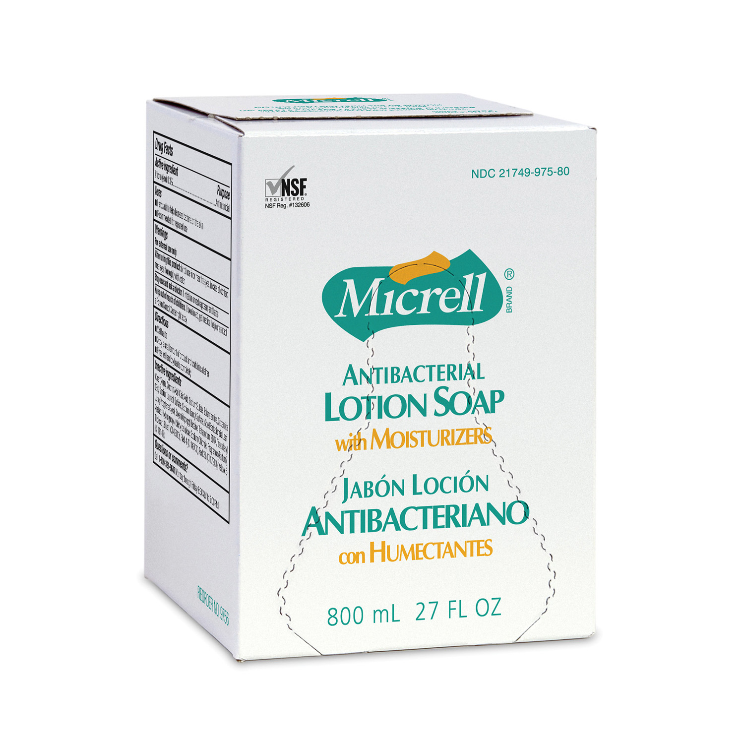 Bag-in-box refill for use with GOJO 800mL Series Soap Dispenser.