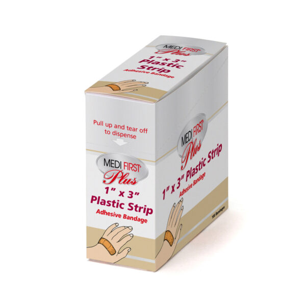 Latex-free plastic adhesive bandages with a non-stick pad and ventilation promote healing.